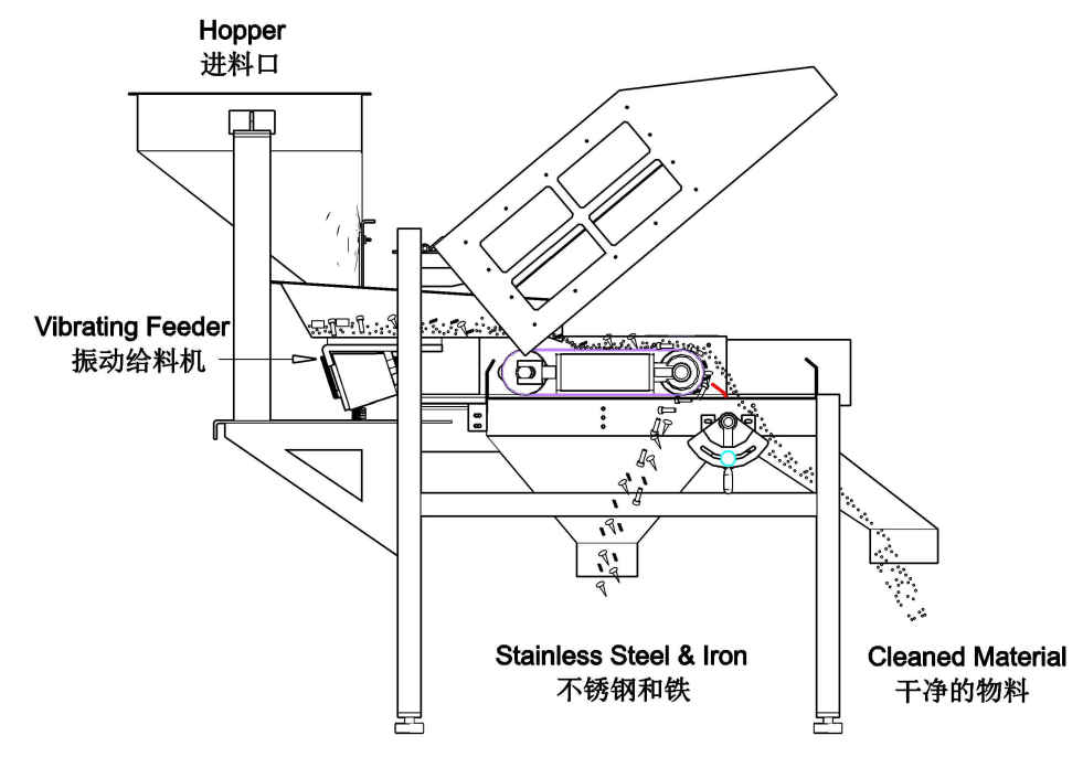 Los separadores de rodillos magnéticos más potentes --- separación sin escalones de alta pureza para materiales débilmente magnéticos Los separadores de rodillos magnéticos más potentes emplean alta intensidad, alto gradiente y desviación de la trayectoria para brindar una alternativa en el manejo de una amplia variedad de materiales que no responden bien a los métodos tradicionales, como los separadores magnéticos de tambor o los imanes de rejilla.Inducidas por potentes circuitos de alto gradiente, las partículas débilmente magnéticas presentan una trayectoria parabólica diferente a la de las partículas no magnéticas.La diferencia se convierte en crítica de separación.